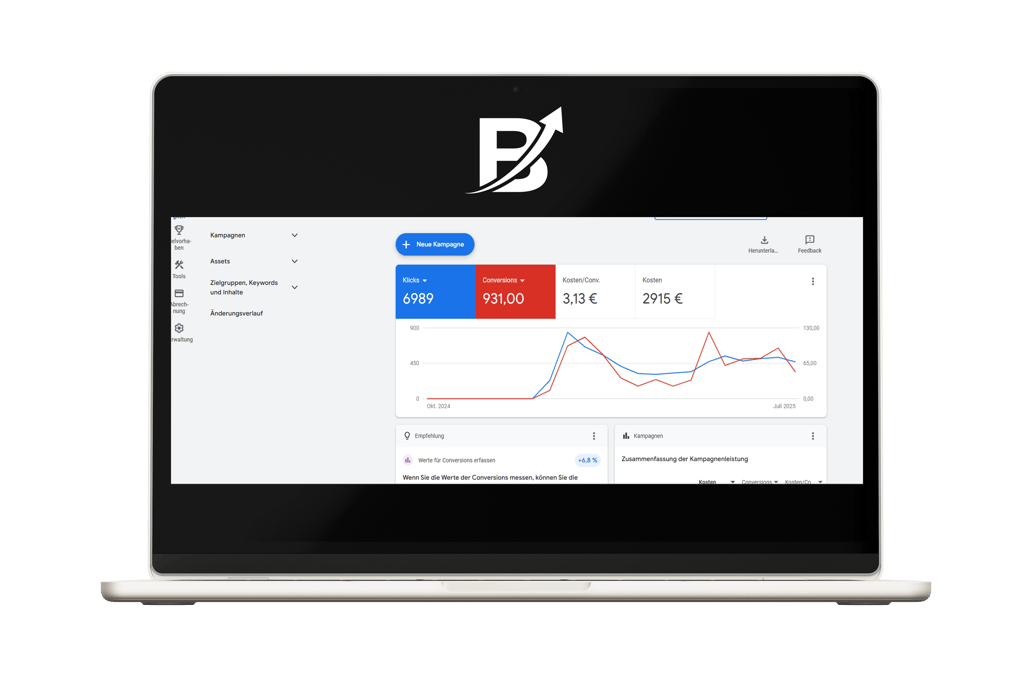 Wir identifizieren die Stellschrauben, die direkt Wirkung zeigen.Aufbau der Performance-Kampagnen